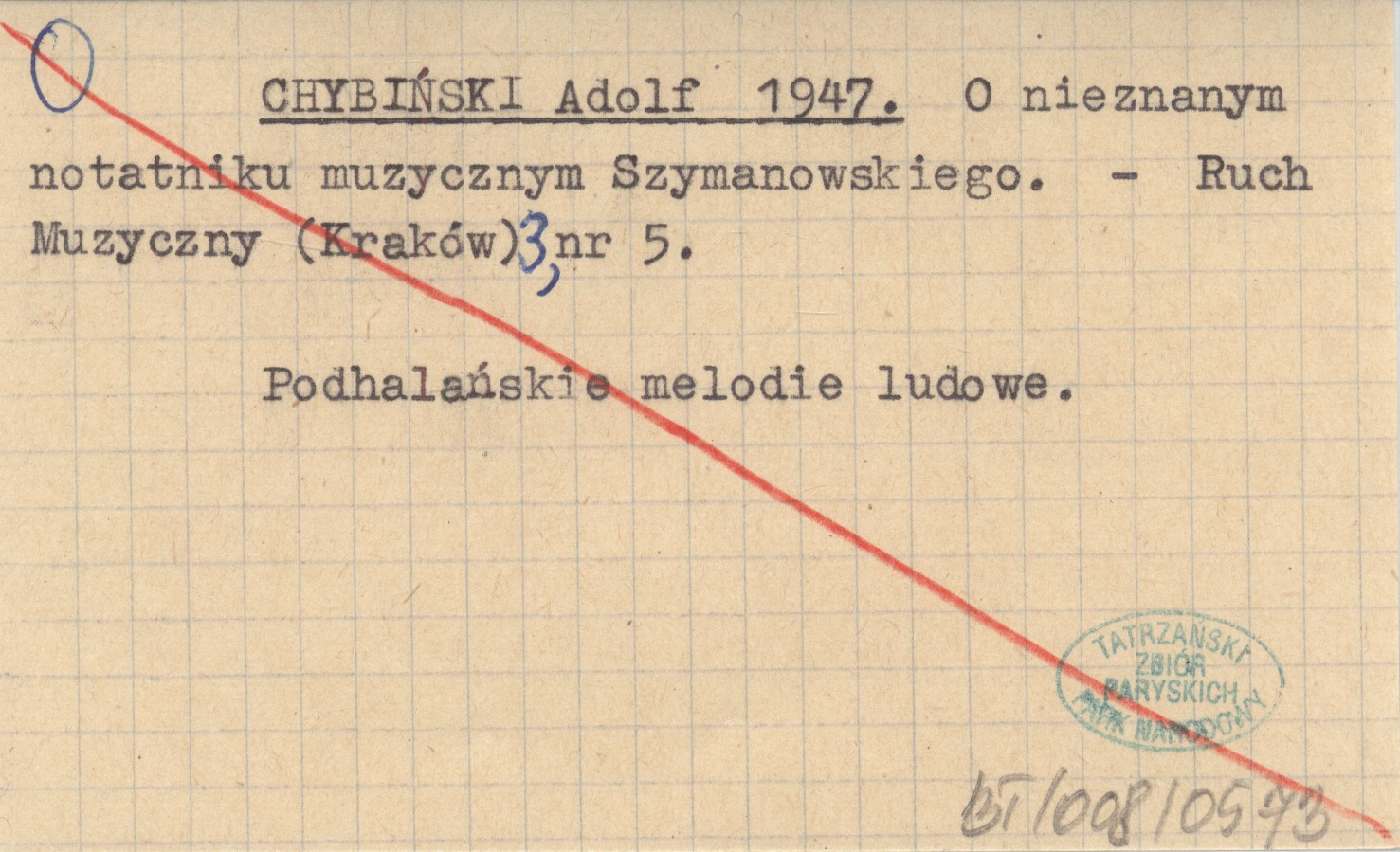 CHYBIŃSKI Adolf 1947 O nieznanym notatniku muzycznym Szymanowskiego.