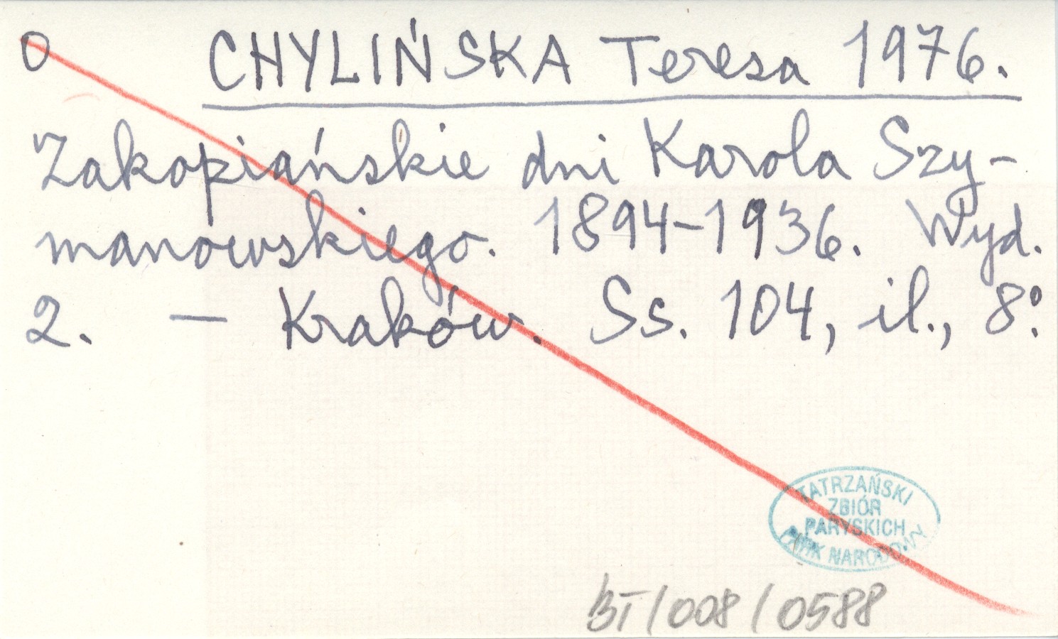 CHYLIŃSKA Teresa 1976 Zakopiańskie dni Karola Szymanowskiego. 1894-1936.