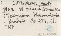 CHYBIŃSKI Adolf 1959 W czasach Straussa i Tetmajera. Wspomnienia.