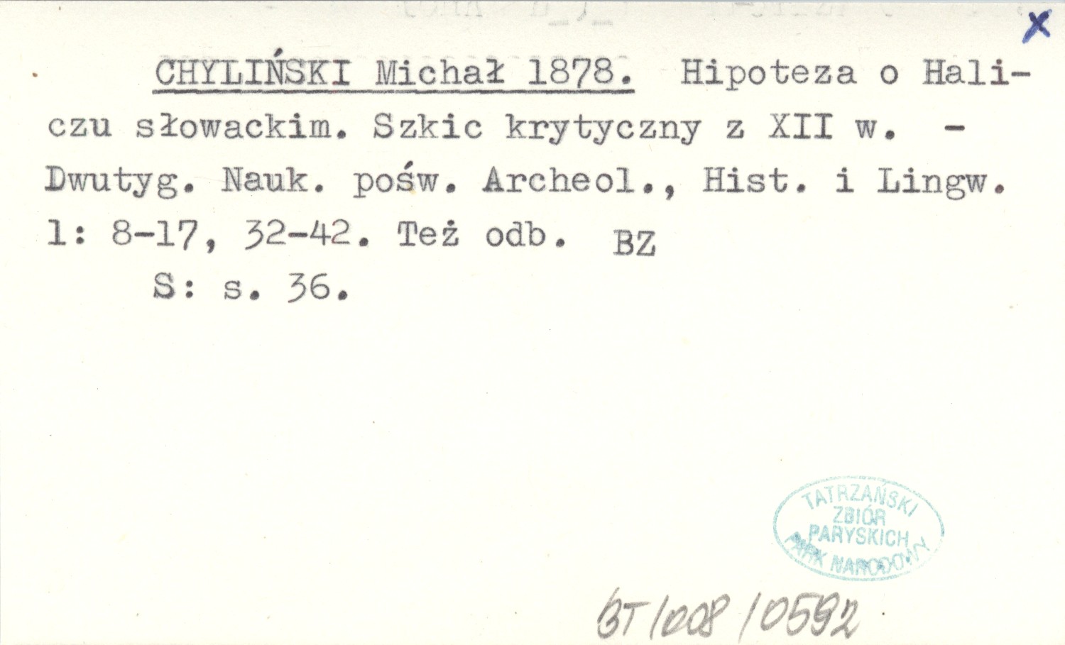 CHYLIŃSKI Michał 1878 Hipoteza o Haliczu słowackim. Szkic krytyczny z XII w.