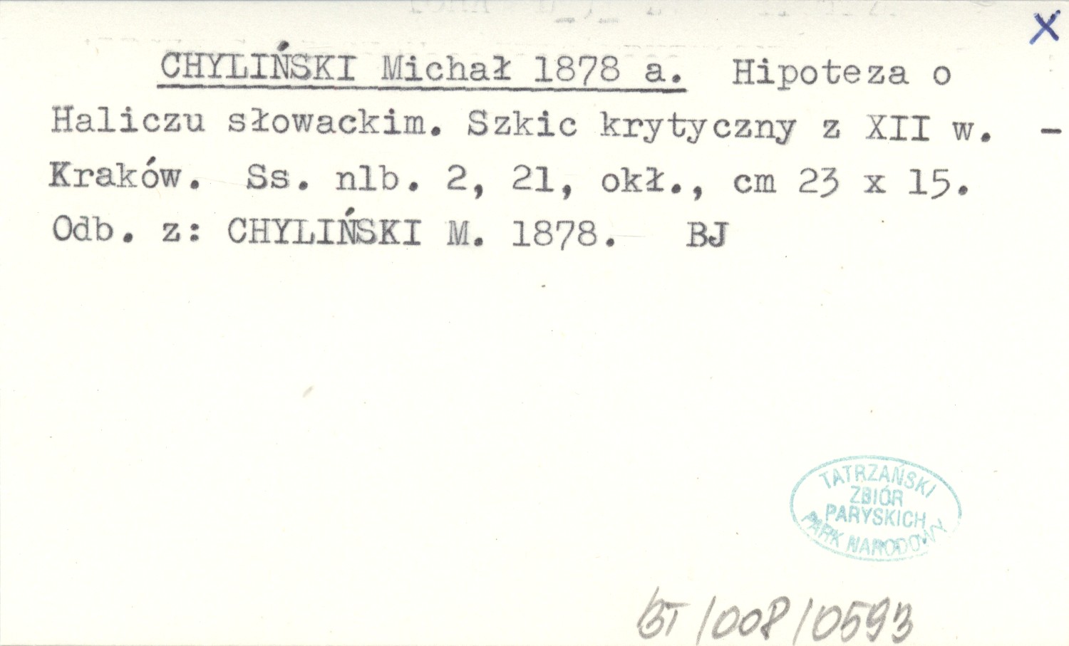 CHYLIŃSKI Michał 1878 a Hipoteza o Haliczu słowackim. Szkic krytyczny z XII w.