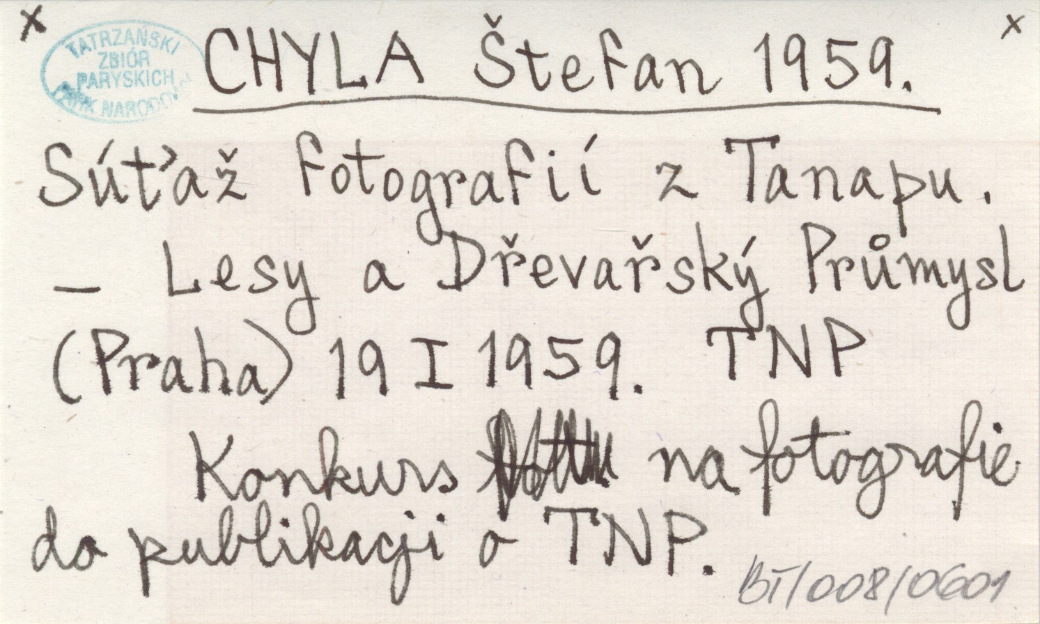 Lesy a Dřevařsky Průmysl Praha , 19 I 1959. Konkurs na fotografie do publikacji o TNP.