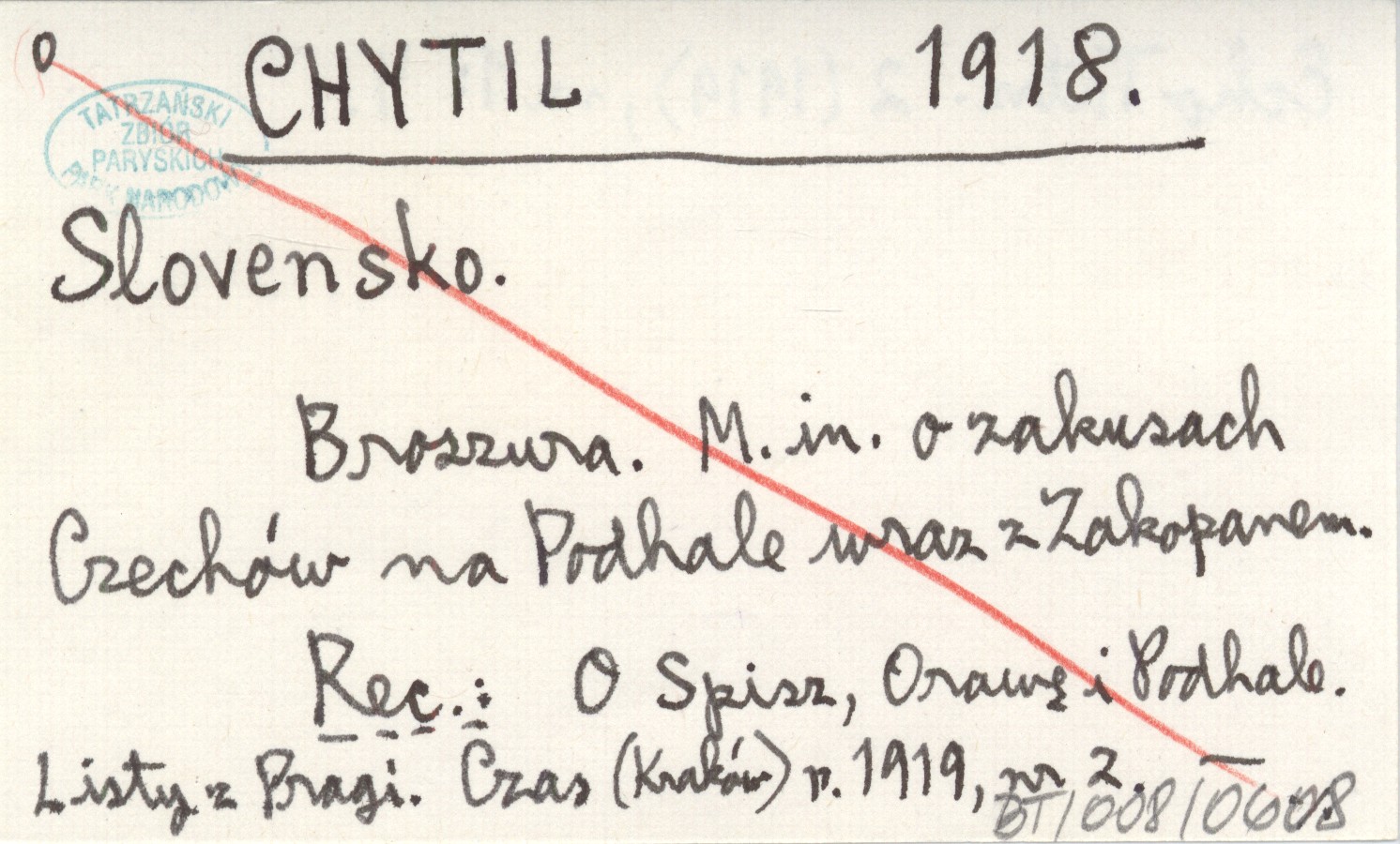 , Broszura. M. in. p zakusach Czechów na Podhale wraz z Zakopanem. REC: O spisz, Orawy i Podhale. Listy z Pragi. Czas (Kraków) r. 1919, nr 2.