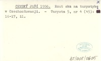 CHYSKÝ Jiří 1956 Rzut oka na turystykę w Czechosłowacji.