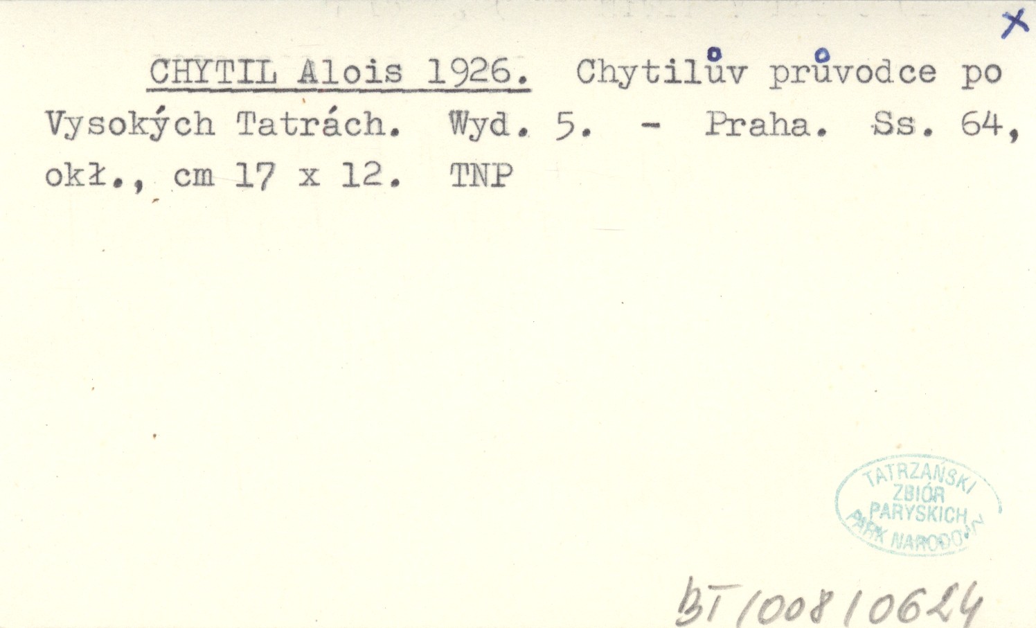 CHYTIL Alois 1926 Chytilův průvodce po Vysokých Tatrách.