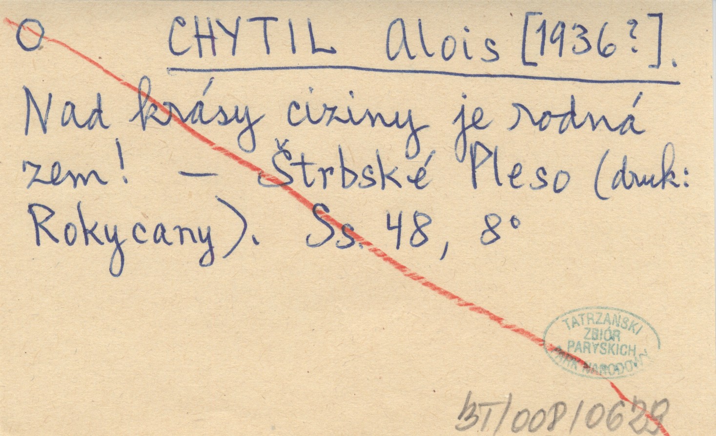 CHYTIL Alois [1936?] Nad krásy ciziny je rodná zem!