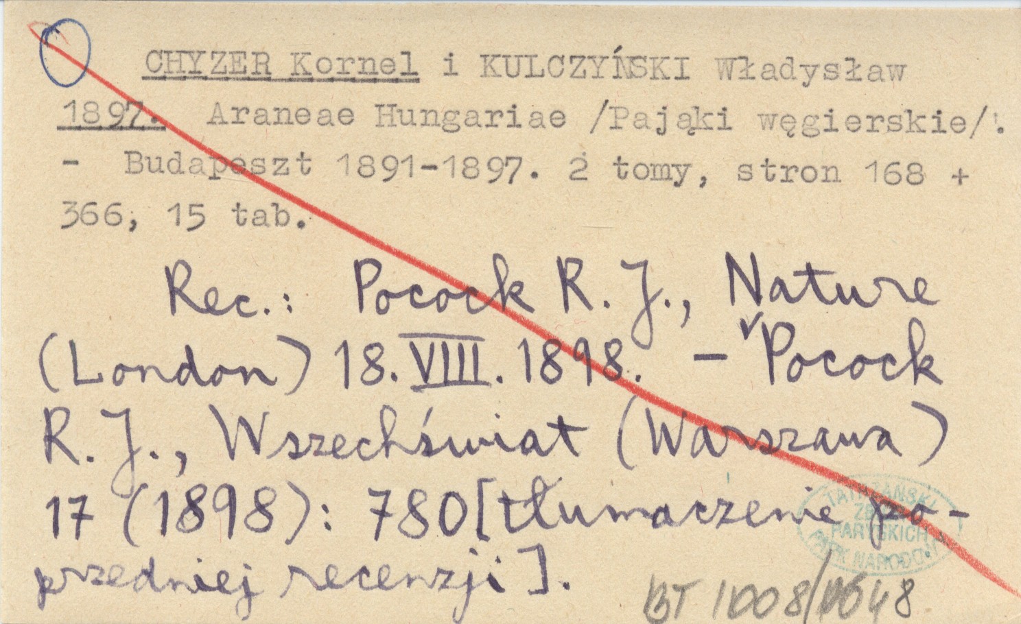 Budapeszt , 1891-1897, 2 tomy, 168, 366 s., 15 k. Pająki węgierskie. REC: Pocock R. J., Nature (London) 18.VIII.1898. Pocock R. J., Wszechświat (Warszawa) 17 (1898): 780 [tłumaczenie poprzedniej recenzji].