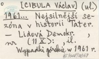 (ul.) [CIBULA Václav] 1961... Nejsilnějši sezóna v historii Tater.