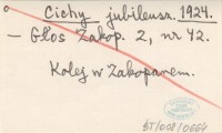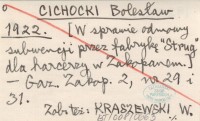CICHOCKI Bolesław 1922 [W sprawie odmowy subwencji przez fabrykę "Strug" dla harcerzy w Zakopanem].