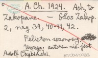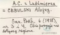 A. C. z Ludźmierza CEBULSKI Alojzy Gazeta Podhalańska 6 (1918), nr 3 i 4. Obie pozycje nie dotyczą regionu.