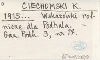 CIECHOMSKI K. 1915... Wskazówki rolnicze dla Podhala.