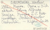 CIECHOWSKI Wacław 1902 Manru. Opera w 3-ch aktach. Słowa Alfreda Nossiga. Muzyka I. J. Paderewskiego. Streścił Wacław Ciechowski.