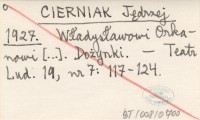 J. C. [CIERNIAK Jędrzej] 1927 [Rec. o:] Julian Krzyżanowski: Pieśniarz krainy kęp i wiecznej nędzy. Rzecz o Władysławie Orkanie. Zakopane 1927.