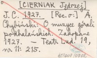 J. C. [CIERNIAK Jędrzej] 1927 [Rec. o:] A Chybiński: O muzyce górali podhalańskich. Zakopane 1927.