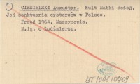 CIESIELSKI Augustyn Kult Matki Bożej, Jej sanktuaria cystersów w Polsce.