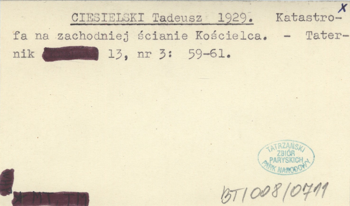 CIESIELSKI Tadeusz 1929 Katastrofa na zachodniej ścianie Kościelca.