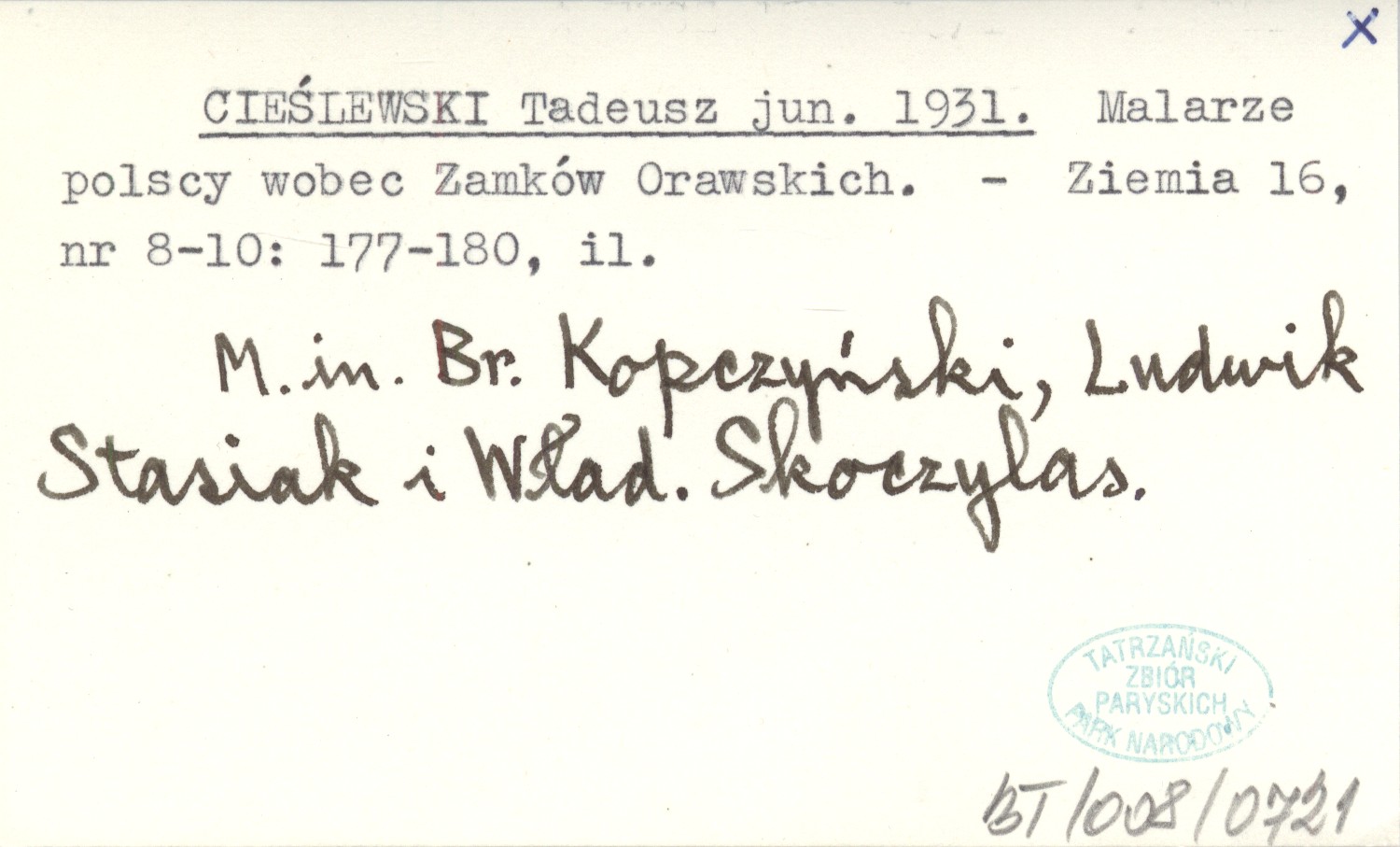 CIEŚLEWSKI Tadeusz jun. 1931 Malarze polscy wobec Zamków Orawskich.