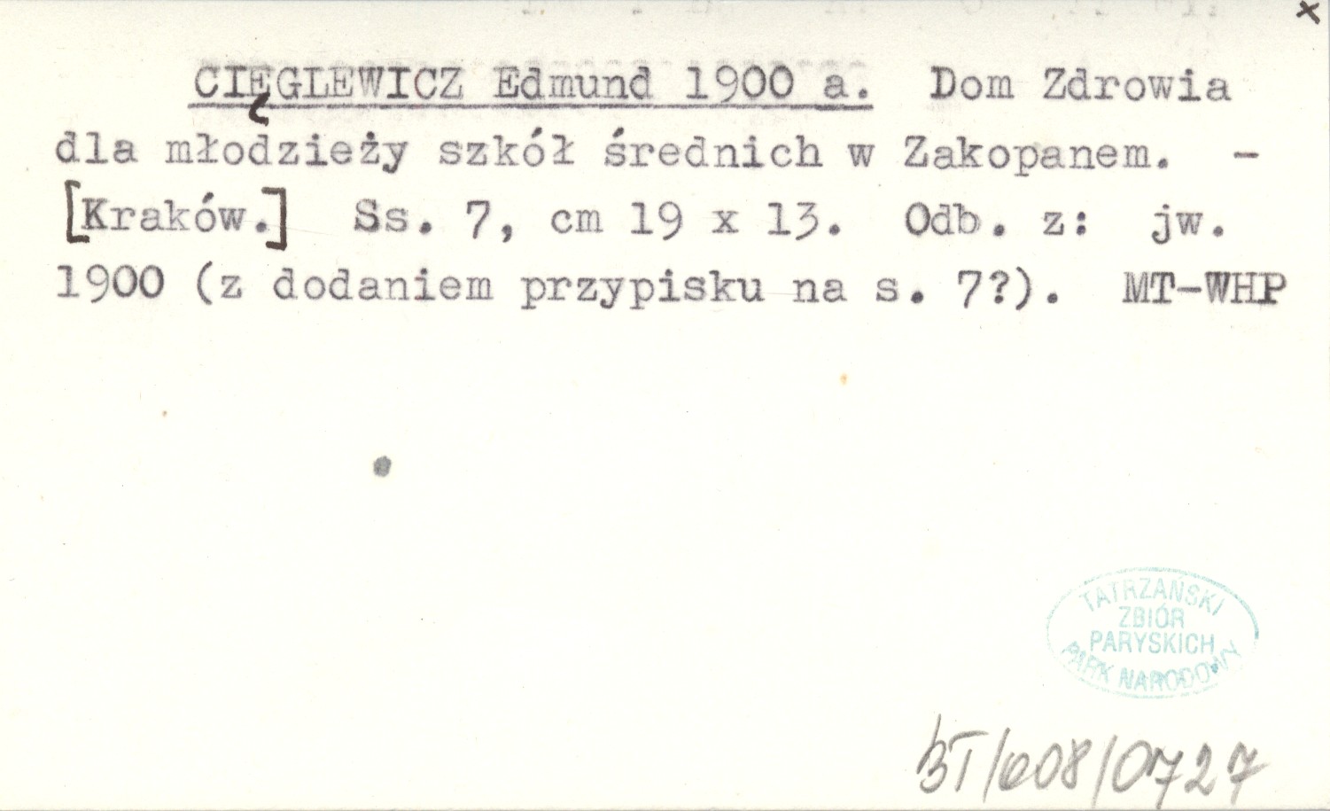 CIĘGLEWICZ Edmund 1900 a Dom Zdrowia dla młodzieży szkół średnich w Zakopanem.