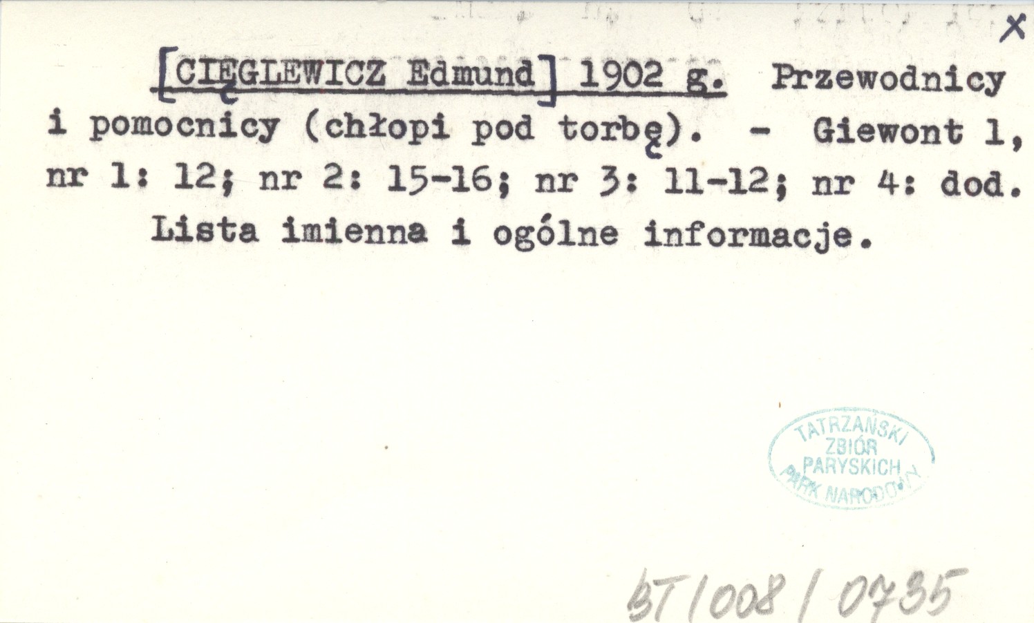 Giewont, 1, nr 1: 12 ; nr 2: 15-16 ; nr 3: 11-12 ; nr 4: dod. Lista imienna i ogólne informacje.