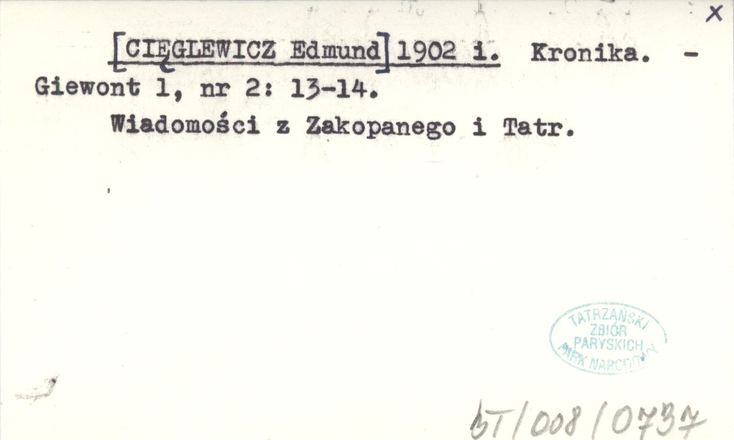 Projekt Digitalizacja fiszek z Bibliografią Tatr i Podtatrza Witolda Henryka Paryskiego jest finansowany ze środków Ministra Kultury i Dziedzictwa Narodowego oraz Tatrzańskiego Parku Narodowego.