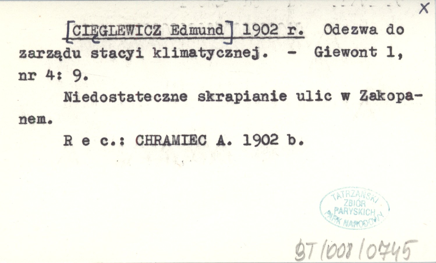 [CIĘGLEWICZ Edmund] 1902 r Odezwa do zarządu stacyi klimatycznej.