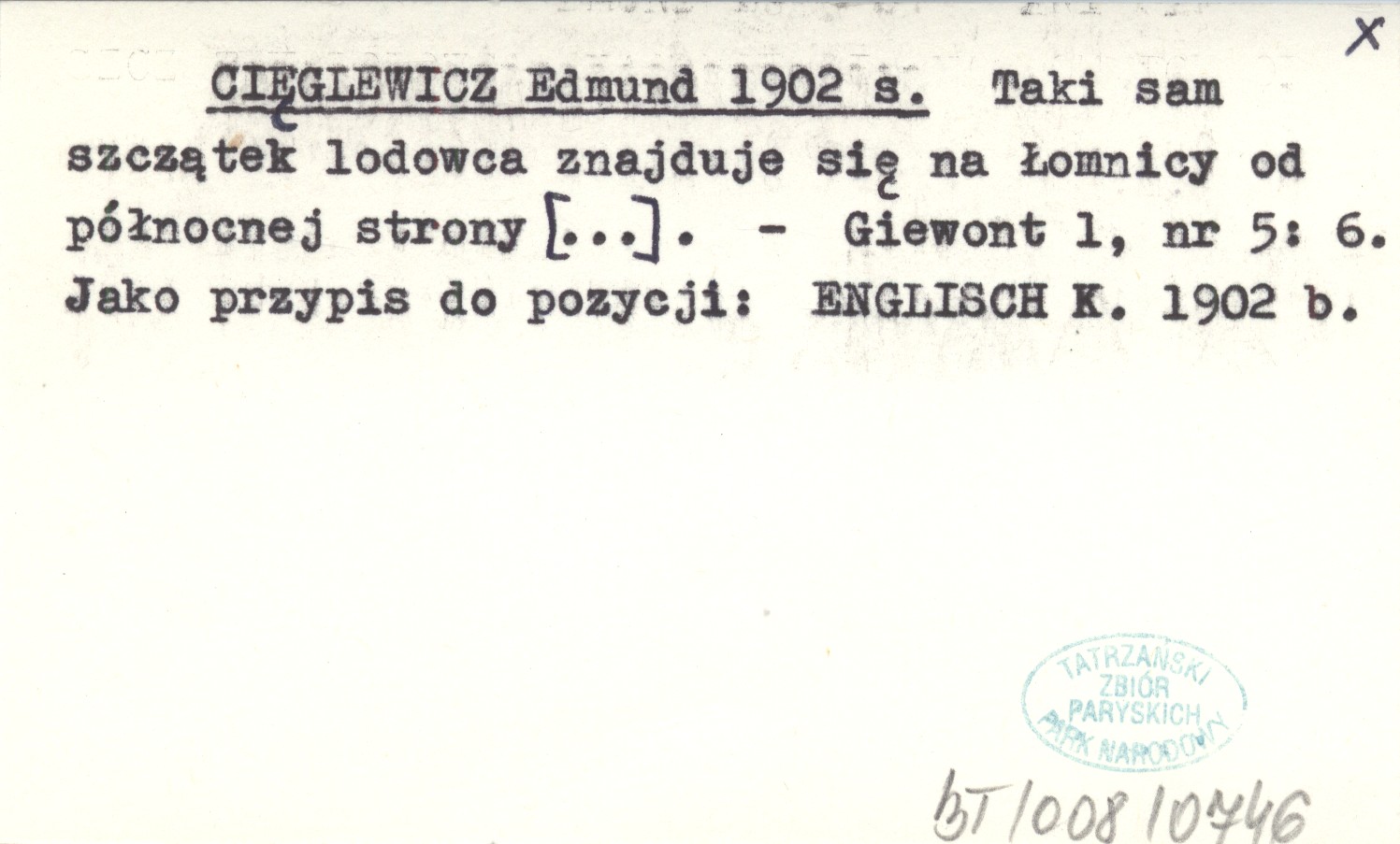 Giewont, 1, nr 5: 6. Jako przypis do pozycji: ENGLISCH K. 1902 b.