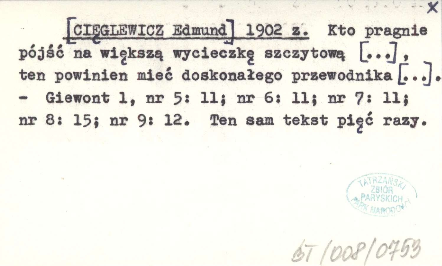 [CIĘGLEWICZ Edmund] 1902 z Kto pragnie pójść na większą wycieczkę szczytową [...], ten powinien mieć doskonałego przewodnika [...].
