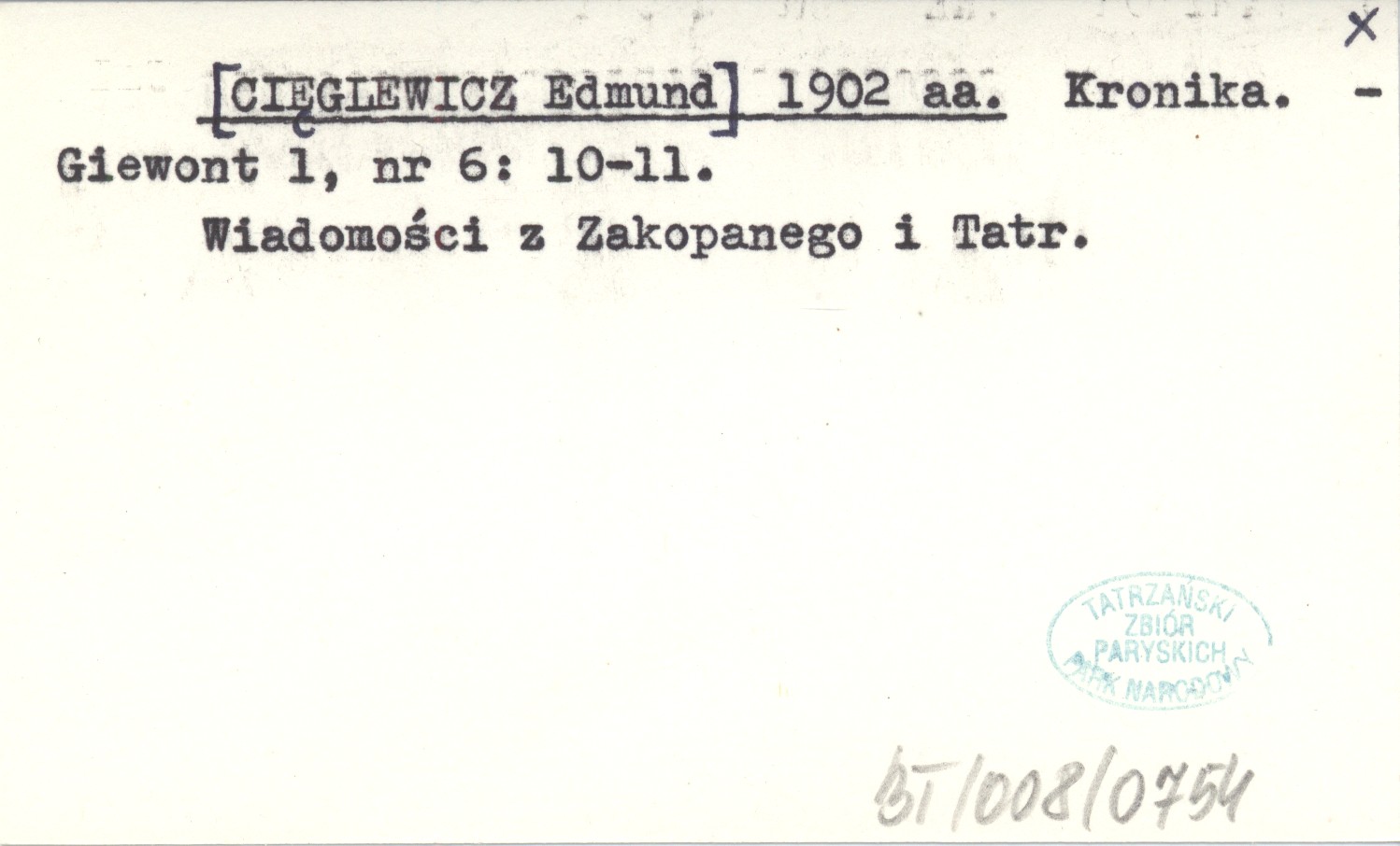 Projekt Digitalizacja fiszek z Bibliografią Tatr i Podtatrza Witolda Henryka Paryskiego jest finansowany ze środków Ministra Kultury i Dziedzictwa Narodowego oraz Tatrzańskiego Parku Narodowego.