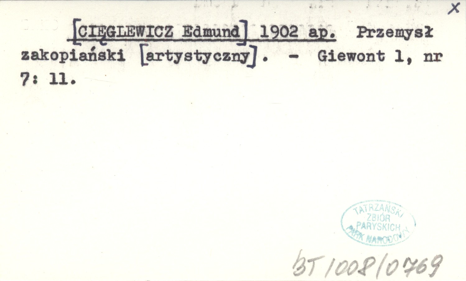 [CIĘGLEWICZ Edmund] 1902 ap Przemysł zakopiański [artystyczny].