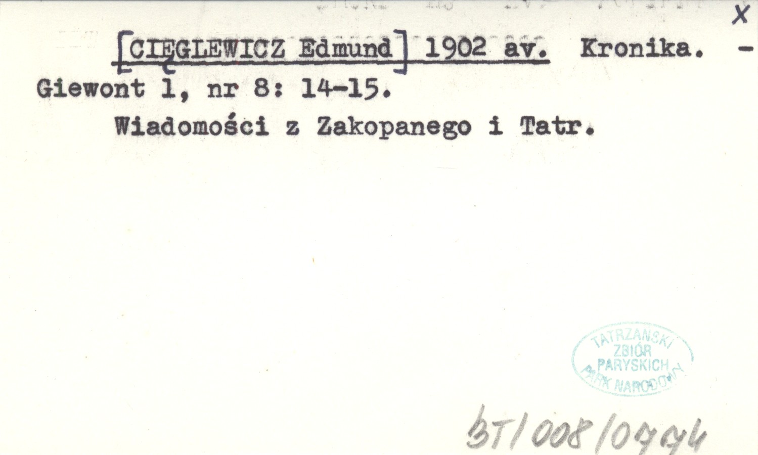 Projekt Digitalizacja fiszek z Bibliografią Tatr i Podtatrza Witolda Henryka Paryskiego jest finansowany ze środków Ministra Kultury i Dziedzictwa Narodowego oraz Tatrzańskiego Parku Narodowego.