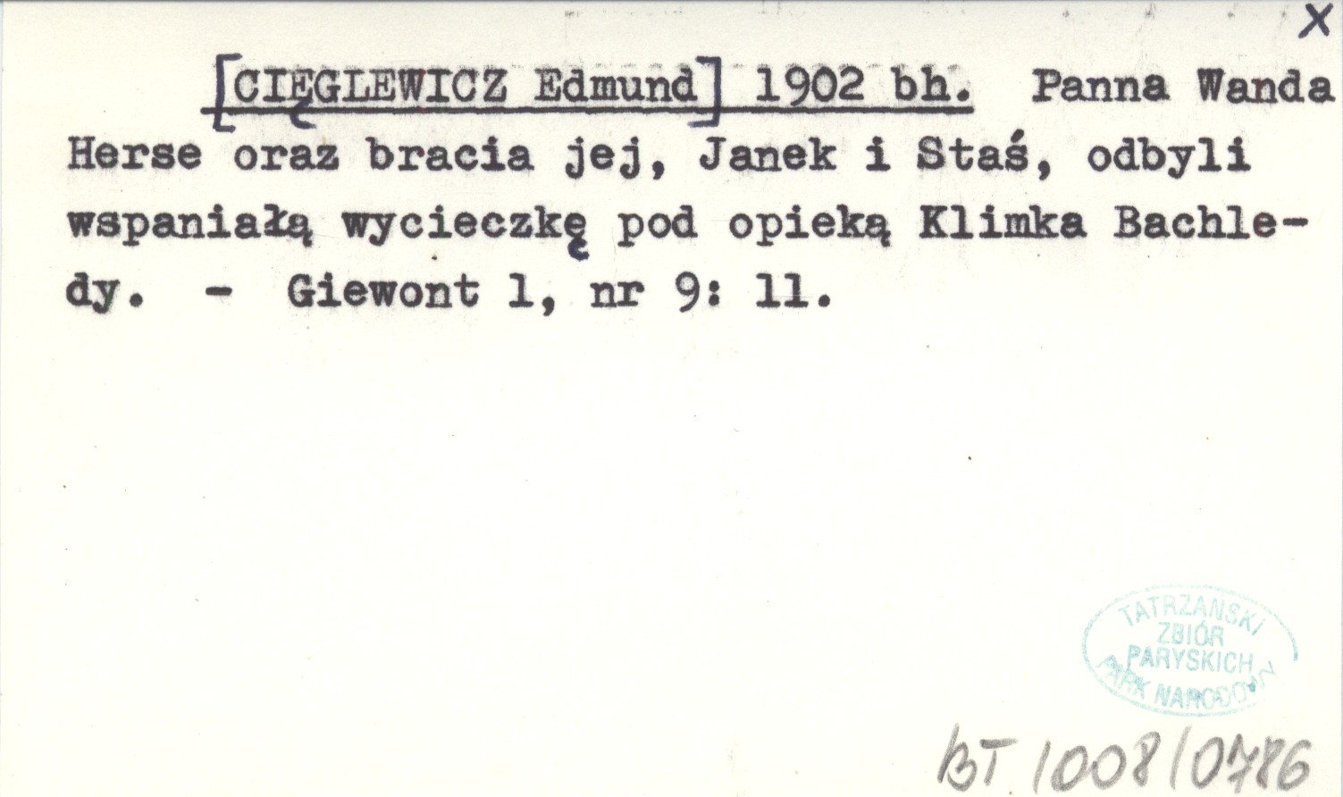 [CIĘGLEWICZ Edmund] 1902 bh Panna Wanda Herse oraz bracia jej, Janek i Staś, odbyli wspaniałą wycieczkę pod opieką Klimka Bachledy.