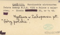 (AHO) 1939 Narciarskie mistrzostwa świata Zawody F.I.S. 1939 w Polsce a malarstwo.