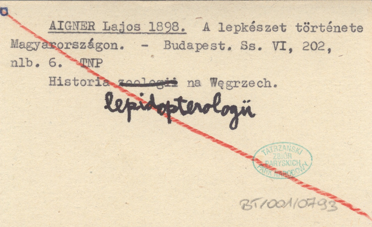 Budapest , VI, 202, [6] s. Historia lepidopterologii na Węgrzech.