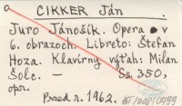 CIKKER Ján Juro Jánošík. Opera v 6. obrazoch. Libreto: Štefan Hoza. Klavírny výťah: Milan Šolc.