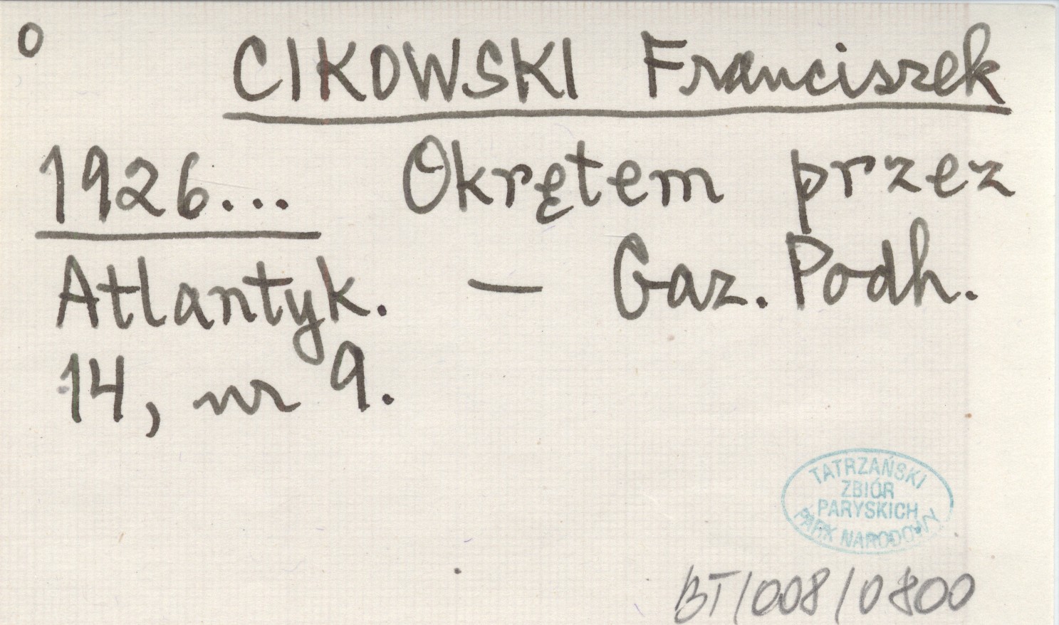 CIKOWSKI Franciszek 1926... Okrętem przez Atlantyk.