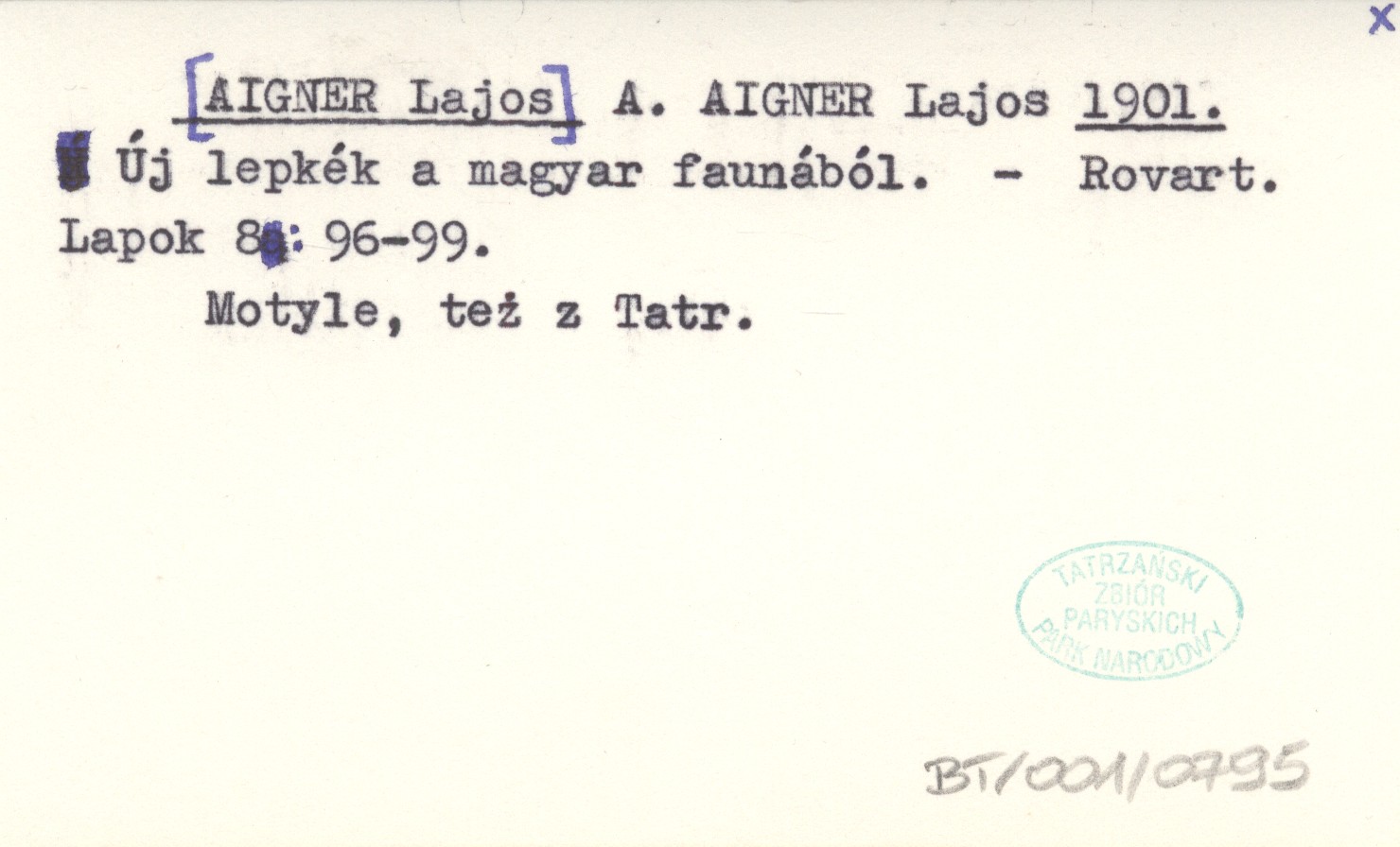 A. AIGNER Lajos [AIGNER Lajos] 1901 Új lepkék a magyar faunából.