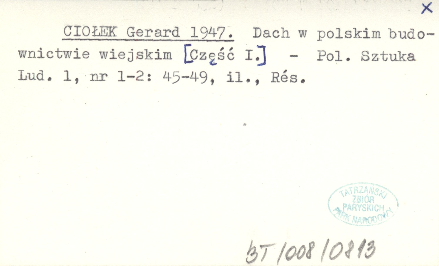 CIOŁEK Gerard 1947 Dach w polskim budownictwie wiejskim. [Część I.]
