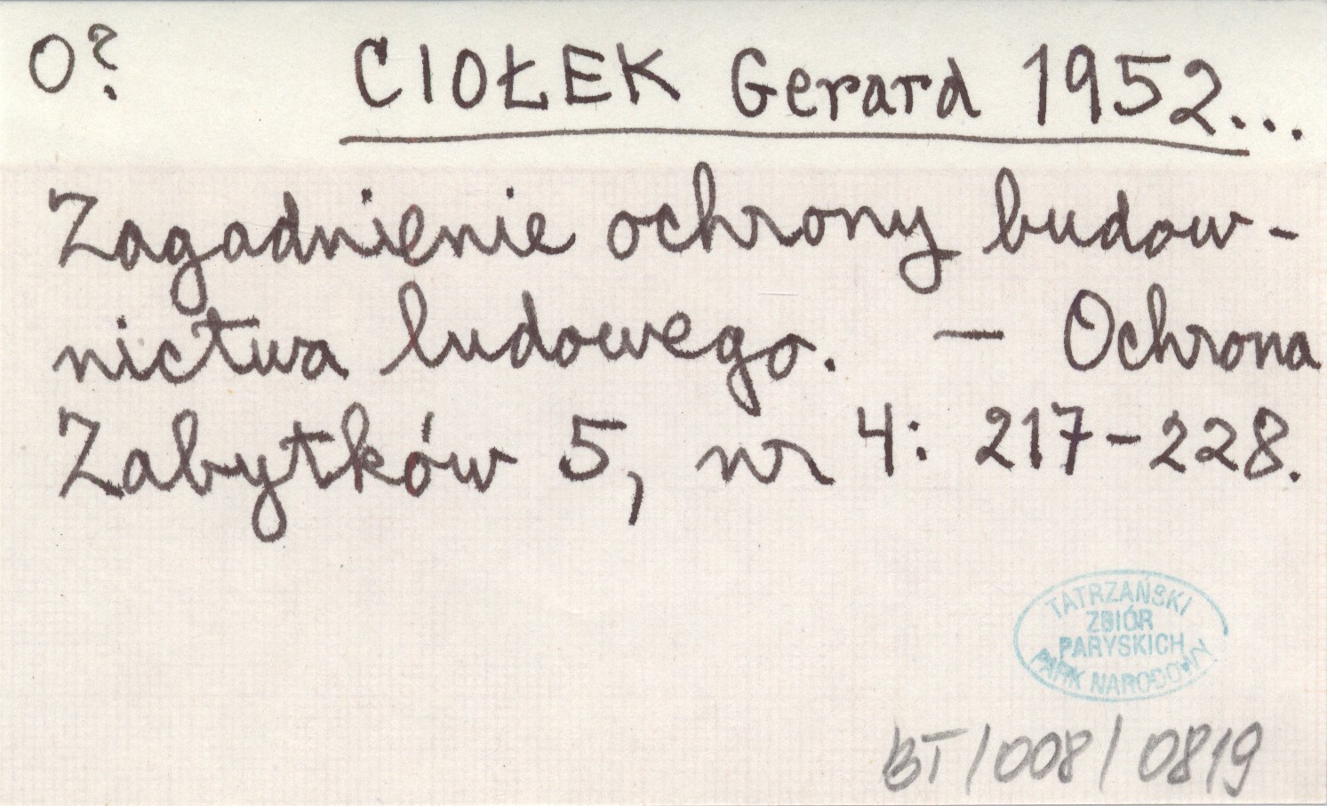 CIOŁEK Gerard 1952... Zagadnienie ochrony budownictwa ludowego.