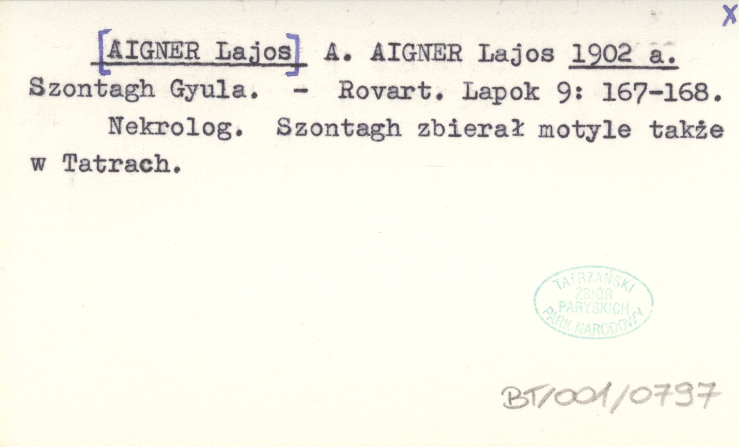 A. AIGNER Lajos [AIGNER Lajos] 1902 a Szontagh Gyula.