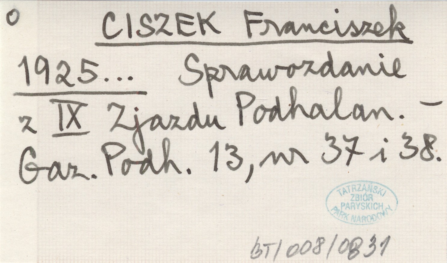 CISZEK Franciszek 1925... Sprawozdanie z IX Zjazdu Podhalan.
