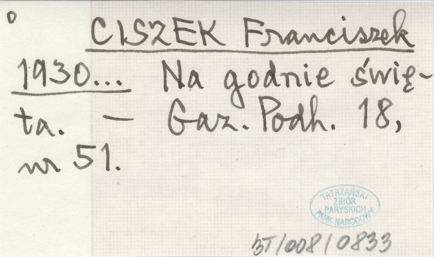 Projekt Digitalizacja fiszek z Bibliografią Tatr i Podtatrza Witolda Henryka Paryskiego jest finansowany ze środków Ministra Kultury i Dziedzictwa Narodowego oraz Tatrzańskiego Parku Narodowego.