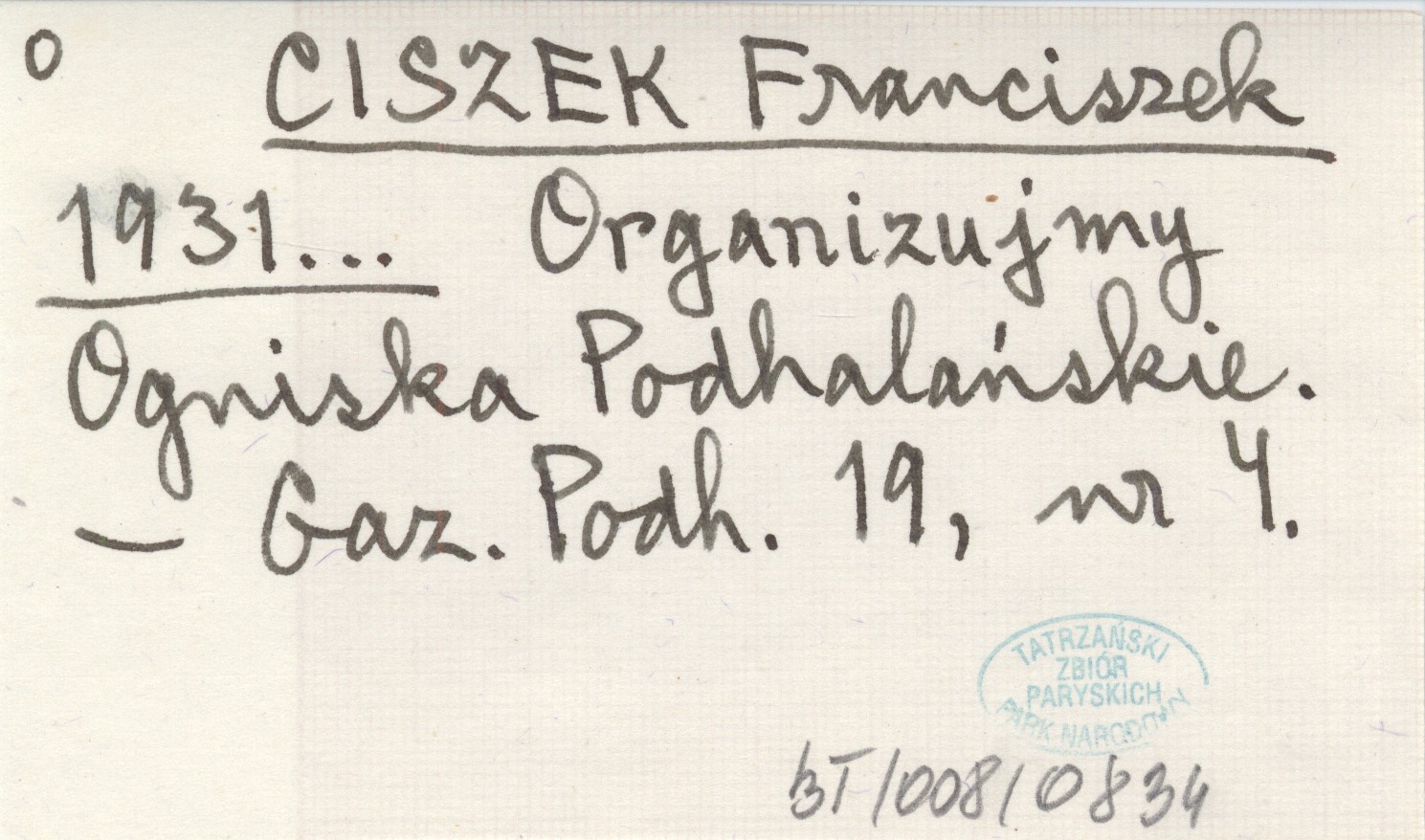 CISZEK Franciszek 1931... Organizujemy Ogniska Podhalańskie.