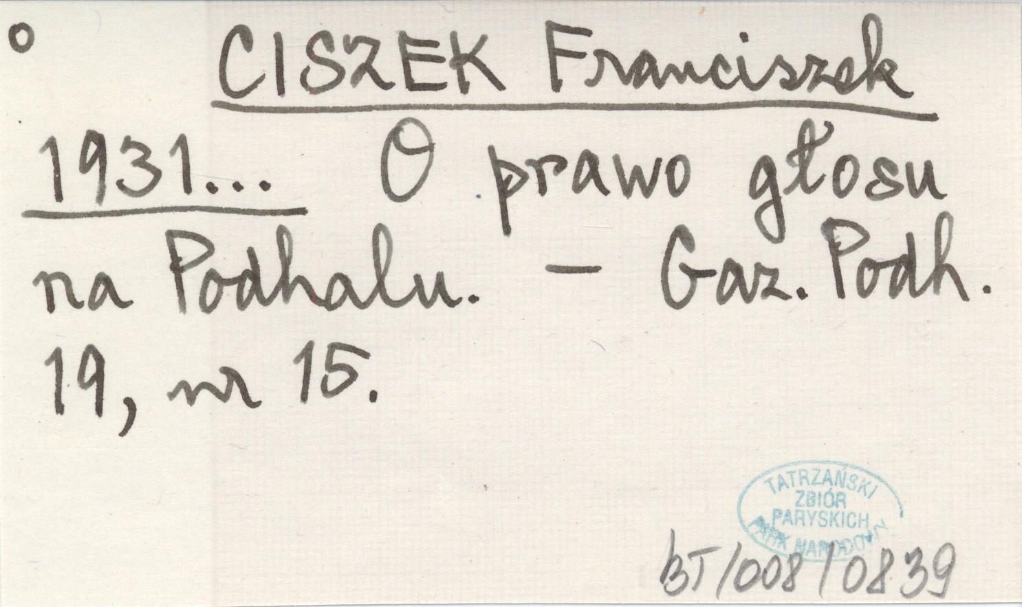 CISZEK Franciszek 1931... O prawo głosu na Podhalu.