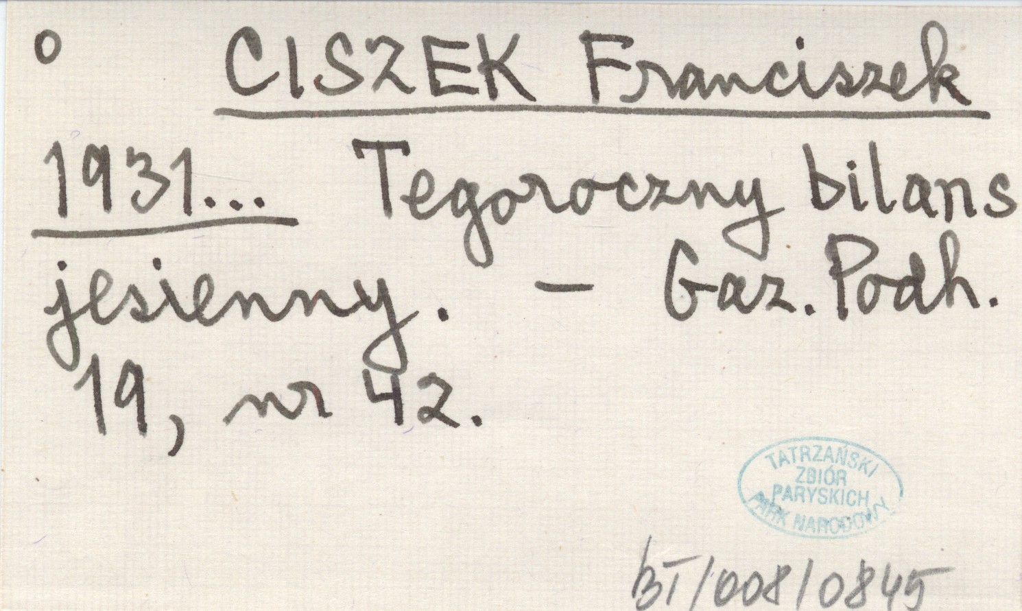 CISZEK Franciszek 1931... Tegoroczny bilans jesienny.