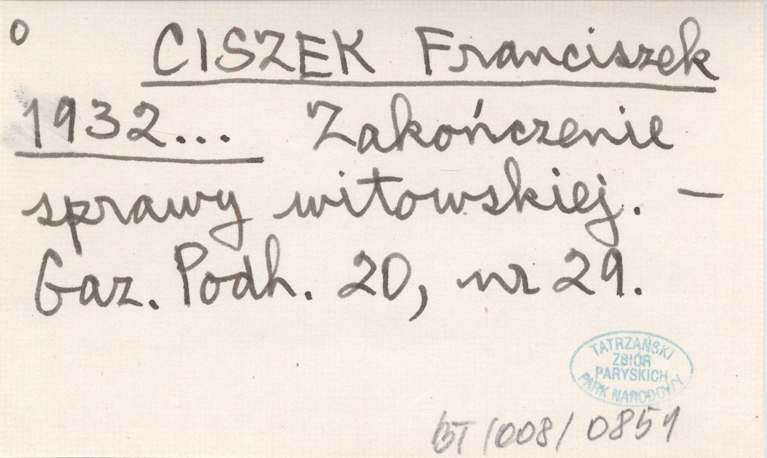 CISZEK Franciszek 1932... Zakończenie sprawy witowskiej.
