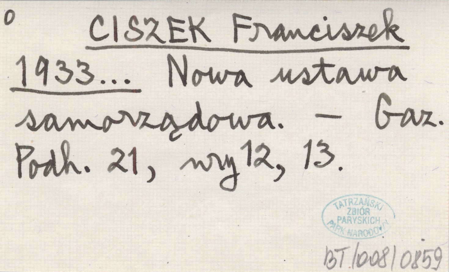 CISZEK Franciszek 1933... Nowa ustawa samorządowa.