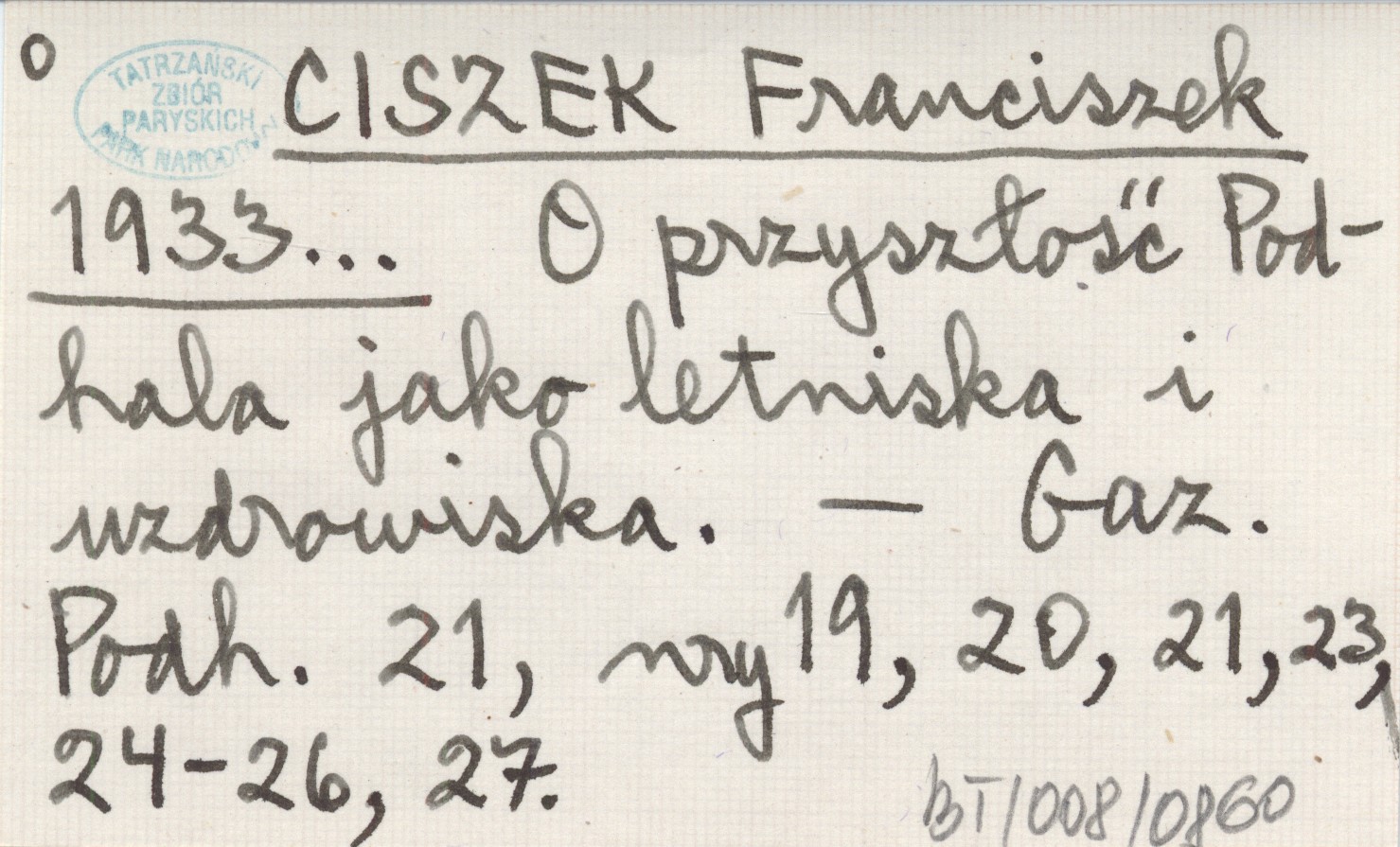 CISZEK Franciszek 1933... O przyszłość Podhala jak letniska i uzdrowiska.