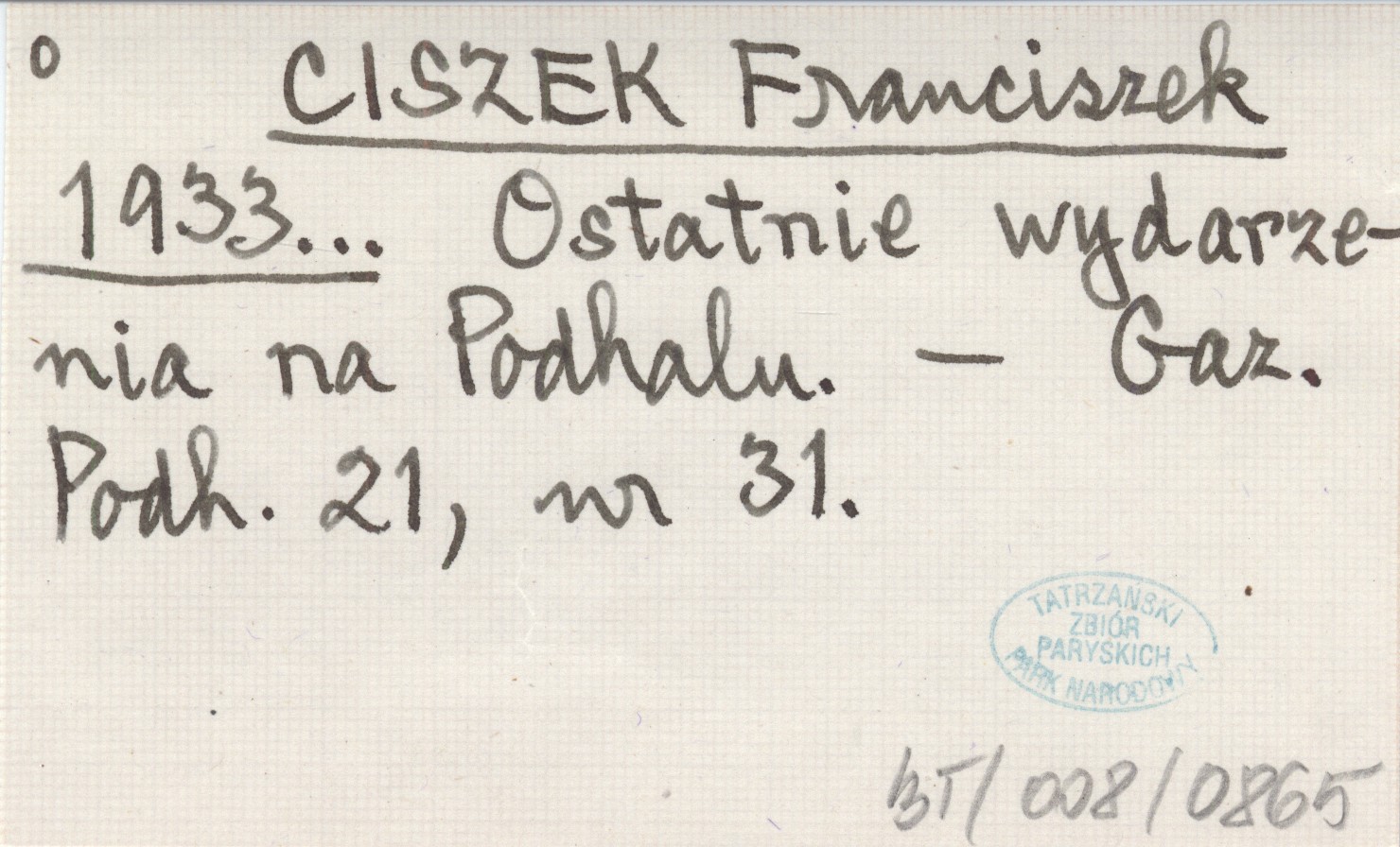 CISZEK Franciszek 1933... Ostatnie wydarzenia na Podhalu.