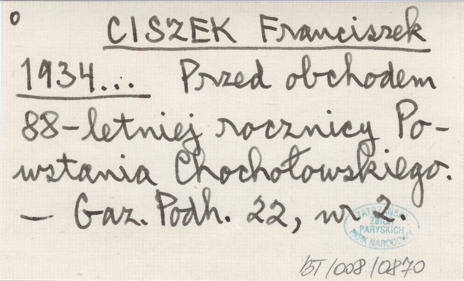 CISZEK Franciszek 1934... Przed obchodem 88-letniej rocznicy Powstania Chochołowskiego.