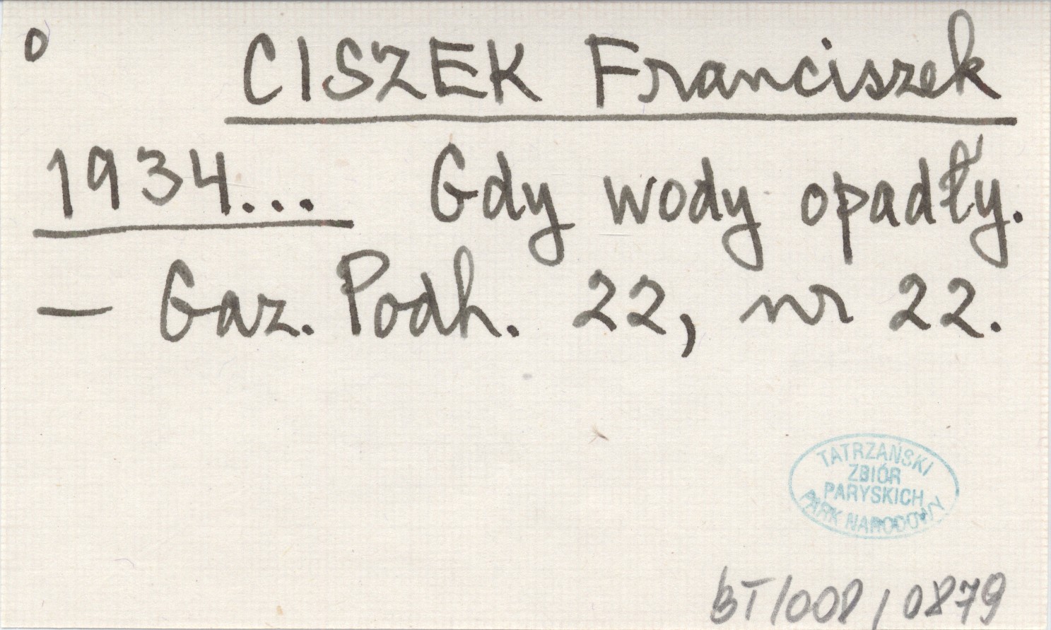 Projekt Digitalizacja fiszek z Bibliografią Tatr i Podtatrza Witolda Henryka Paryskiego jest finansowany ze środków Ministra Kultury i Dziedzictwa Narodowego oraz Tatrzańskiego Parku Narodowego.